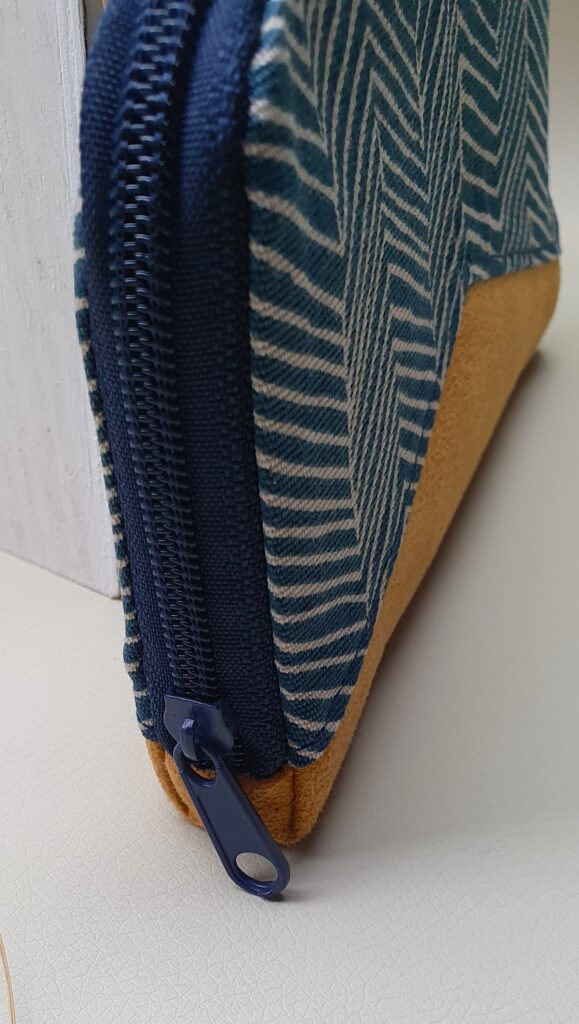 Portemonnaie aus Cord mit umlaufendem Reißverschluss. Innen mit Baumwolle gefüttert.