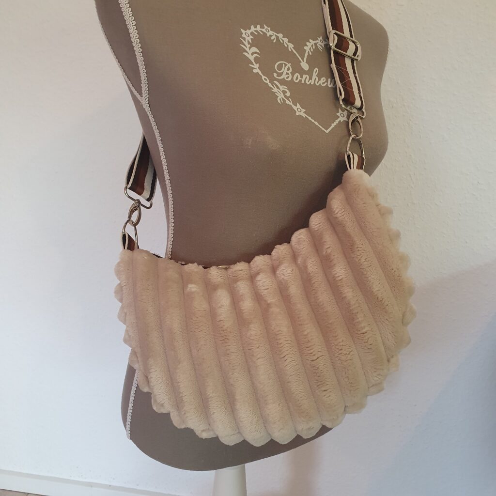 Diese Umhängetasche ist aus Fake Fur genäht. Die Innentasche bietet ein geräumiges Reißverschlussfach und ist mit Baumwolle gefütter. Die Tasche wird mit einem Zweiwegereißverschluss.